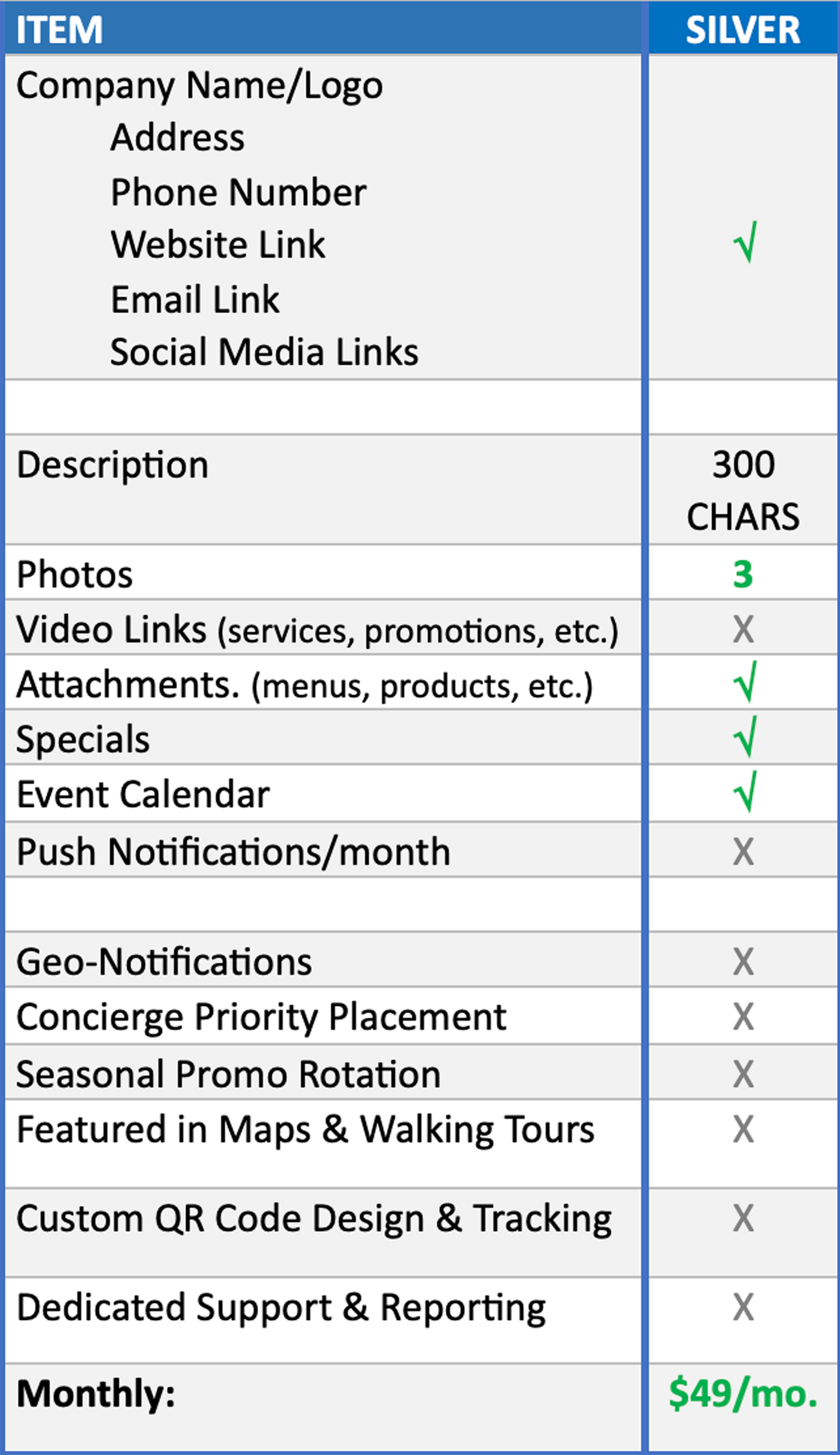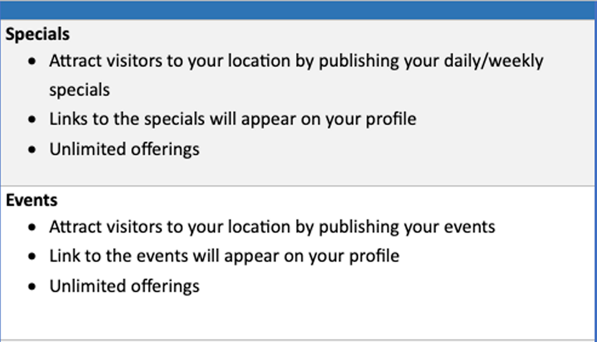 Silver listings will put your specials and events in front of the Sarasota App. Users will find your specials and your events which will lead them to your profile.